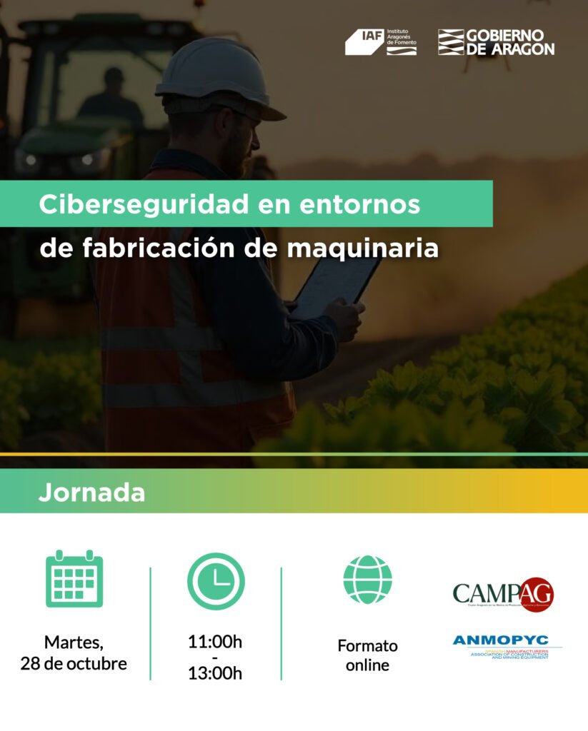 | Por este motivo, ANMOPYC y CAMPAG organizan la jornada presencial “Ciberseguridad en entornos de fabricación de maquinaria”, que se celebrará el 28 de octubre en Zaragoza. Una jornada completa donde podrás aprender, compartir y conectar con expertos y empresas que están liderando el cambio hacia un entorno industrial más seguro. La Jornada dará comienzo con la sesión técnica: Retos y estrategias en materia de ciberseguridad industrial Horario: 11:00 h a 13:00 h Formato Online Durante la mañana, expertos de empresas como Integra, Hiberus, ITA, TÜV y Monclús compartirán su experiencia en torno a los retos actuales de la ciberseguridad industrial, abordando temas como: – Protección de infraestructuras conectadas, – Gestión de riesgos y vulnerabilidades, – Casos reales y buenas prácticas aplicados a la fabricación de maquinaria, – Cumplimiento de normativas, – Papel de la inteligencia artificial en la detección y respuesta ante amenazas, – Ayudas disponibles para impulsar la ciberseguridad en el sector. Los ponentes serán: INTEGRA – Gonzalo Bernal, Director General de Tecnología HIBERUS – Eduardo Gistau, Global Head of Cybersecurity ITA – Rafael del Hoyo, Responsable de IA y Sistemas Cognitivos SMF Monclus – Álvaro Monclús, Abogado TÜV Rheinland “Actividad financiada por el IAF” |